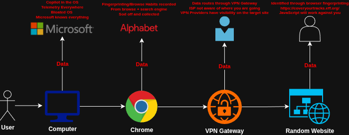 As the fight for data privacy becomes more and more difficult, with more online web-applications increasing the quantity of data grabbed from their users, leading us into a deeper and darker dystopian future. To avoid the worst-case scenario were every single person has fallen to this monstrous data algorithm everyone who uses the internet needs to fight for their data privacy.